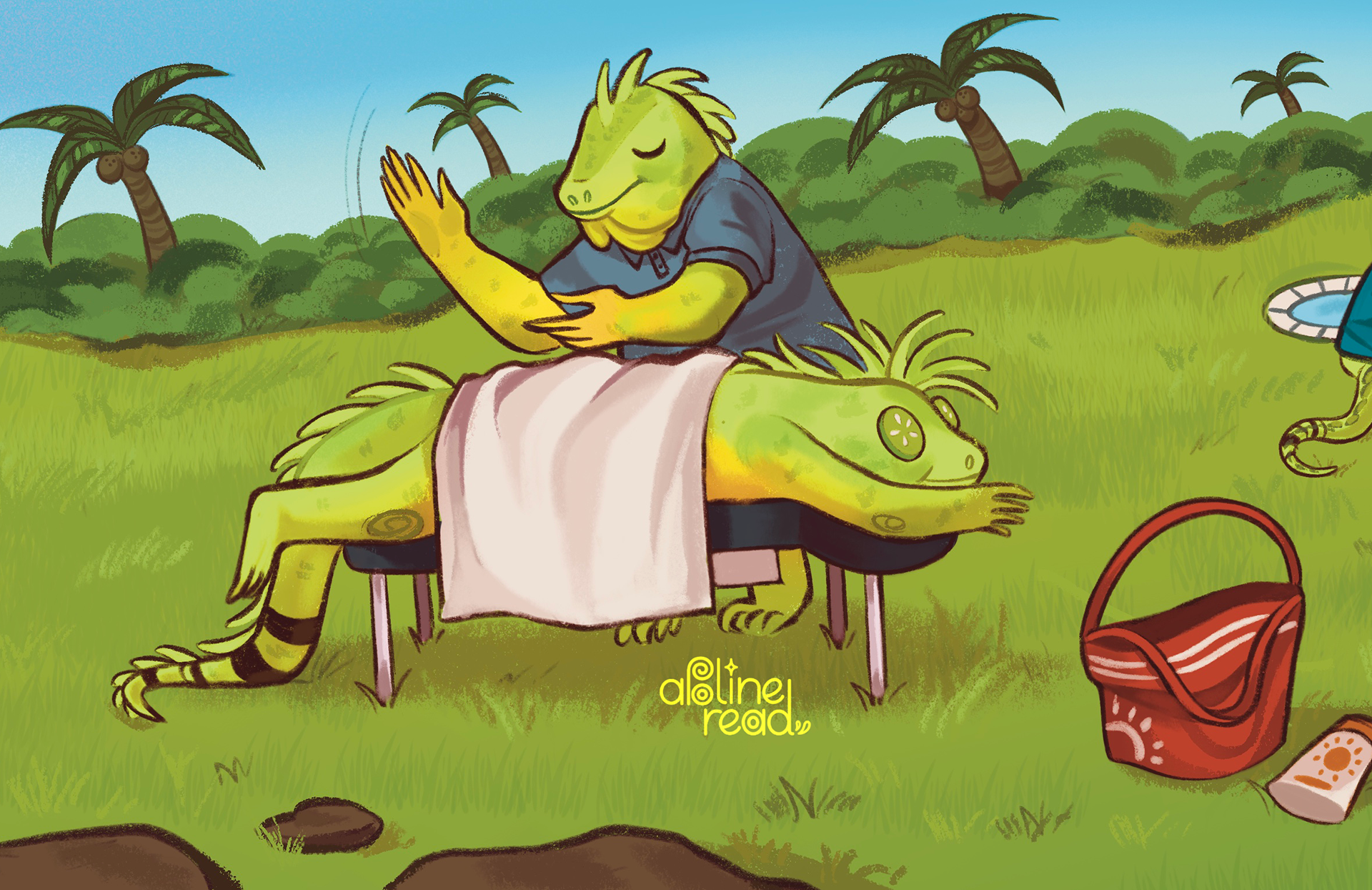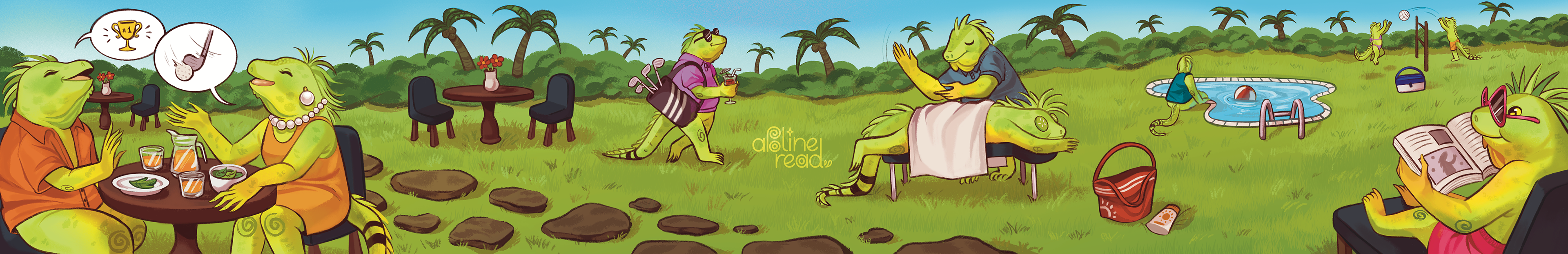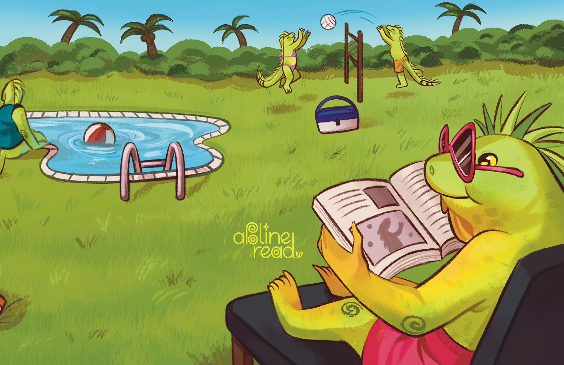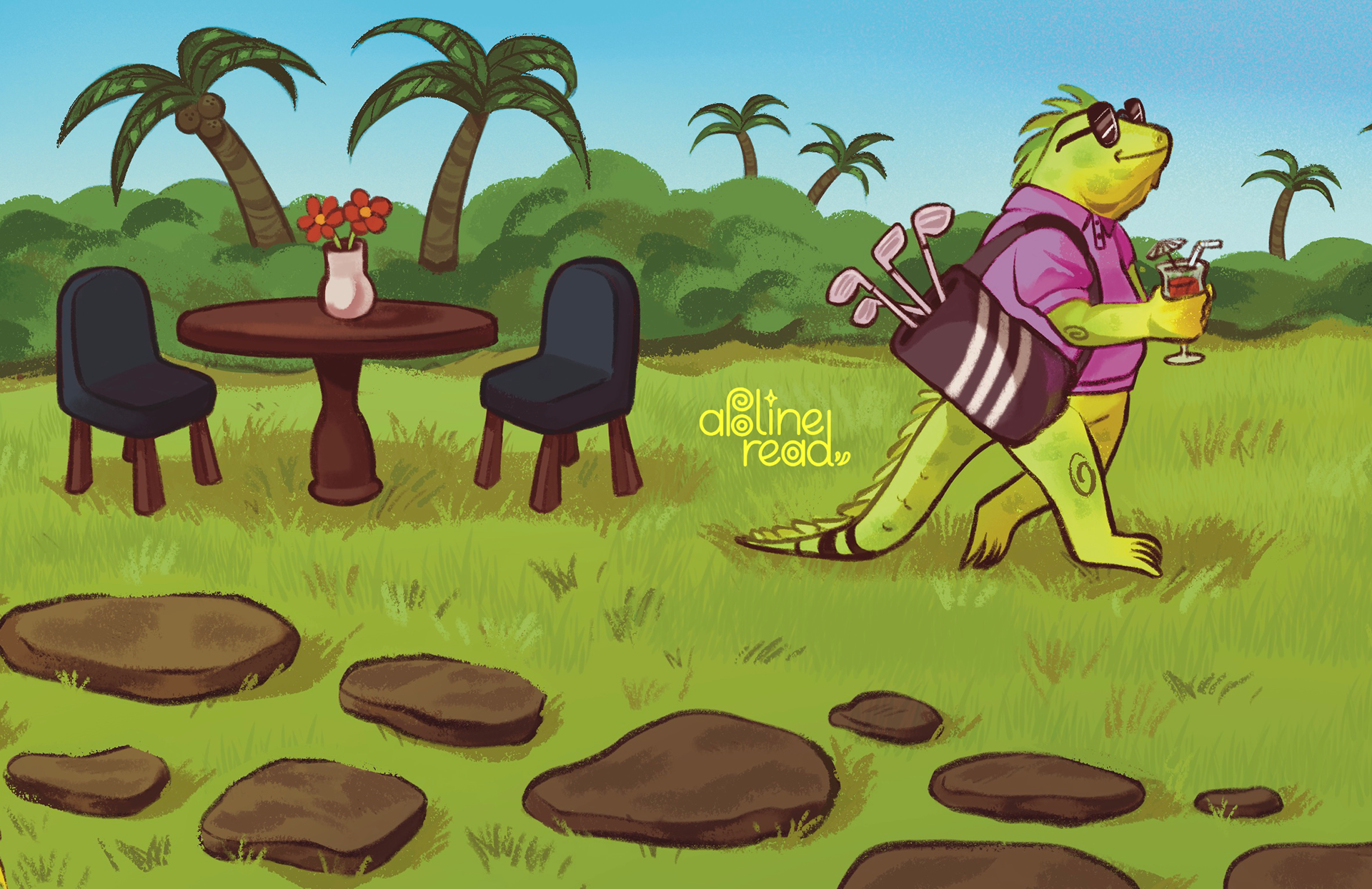 Mural concept inspired in Barranquilla's wildlife having a relaxing day at a resort, as an assignment for Illustration class.